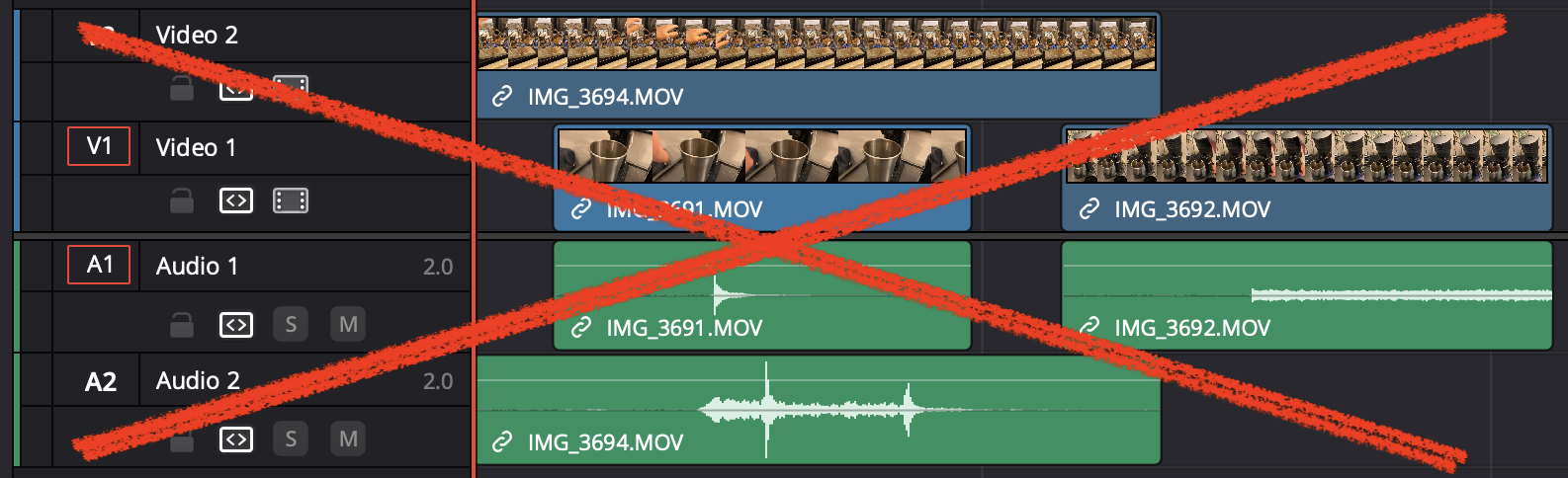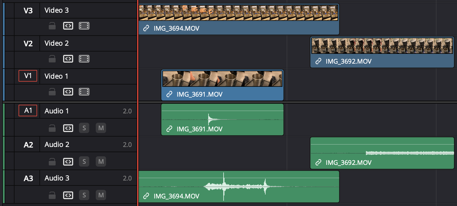 It should look something like this with all audio on separate tracks: