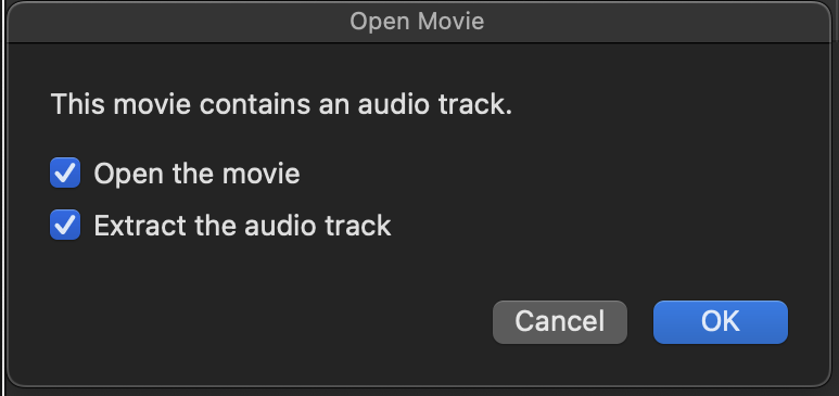 answer all the alerts (usually with the suggested blue button) making sure you checkmark "on separate tracks" when asked about the audio: